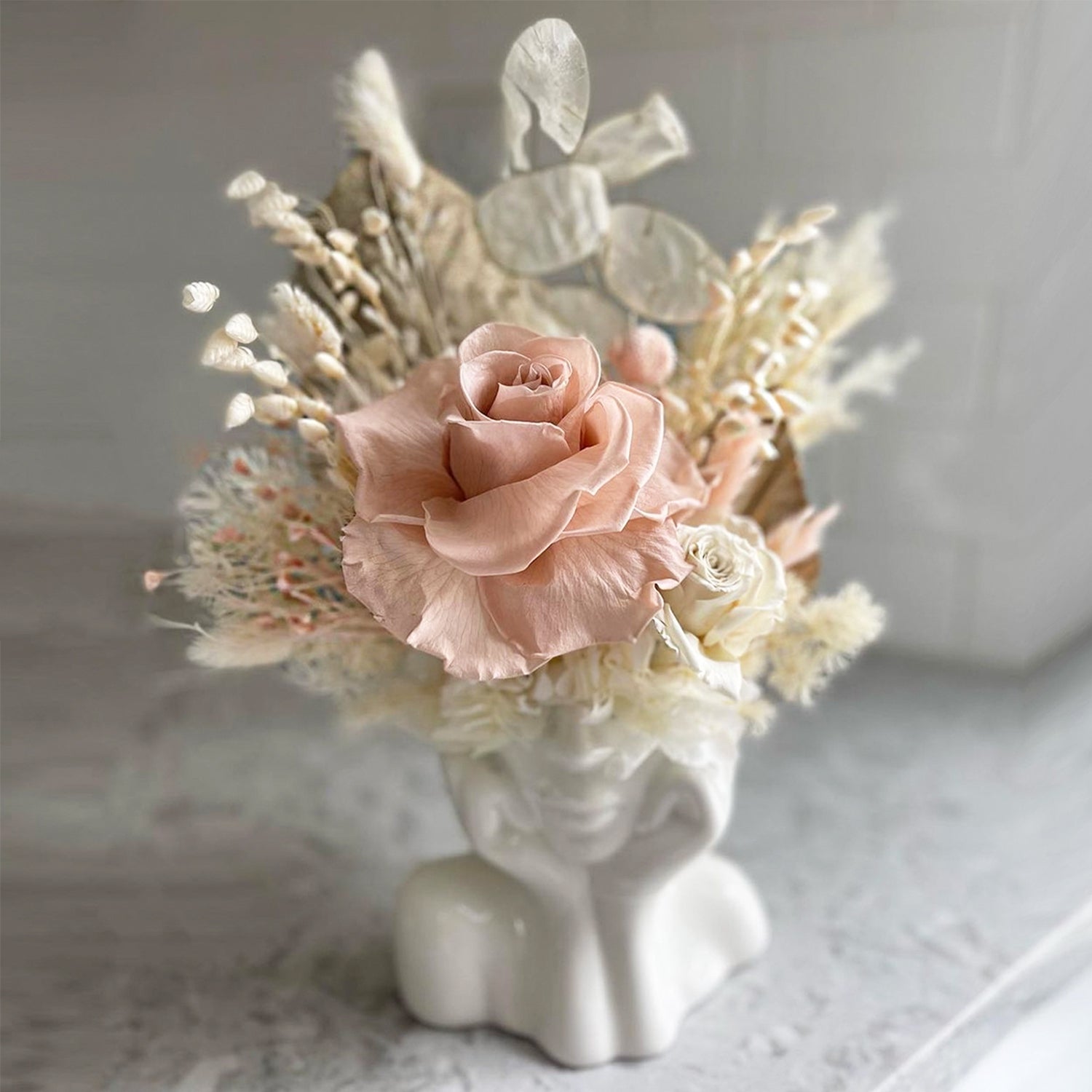 We don’t just “fill the vase”—we curate each arrangement to be its best and fullest, ensuring the highest quality florals. Whether it's our carefully selected preserved florals or elegant dried foliage, we choose only the finest materials to ensure your arrangements remain beautiful for years to come.